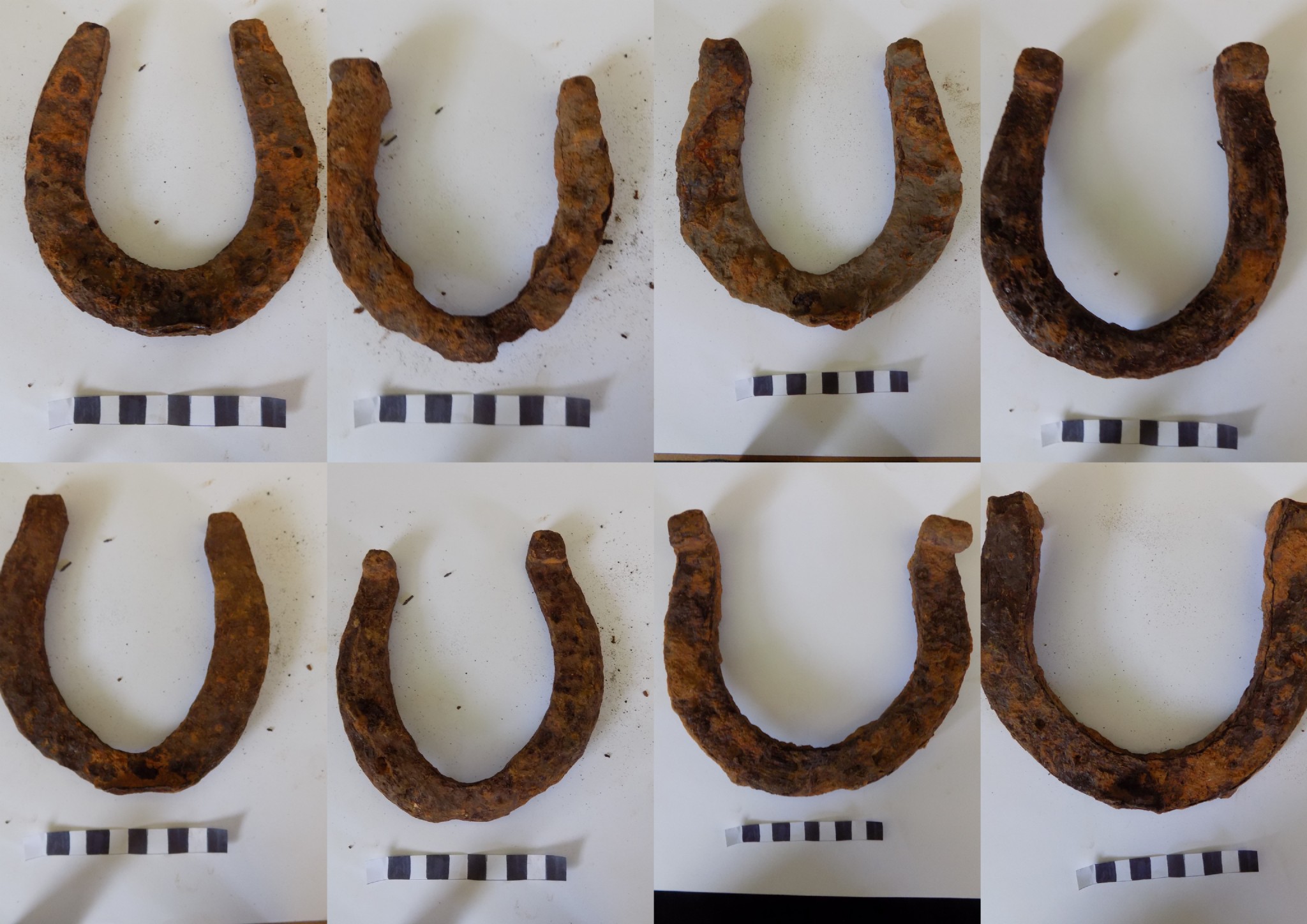 A series of varied metal detector finds by John Webb in the area of Skelbo Castle. A collection of eight horse shoes.