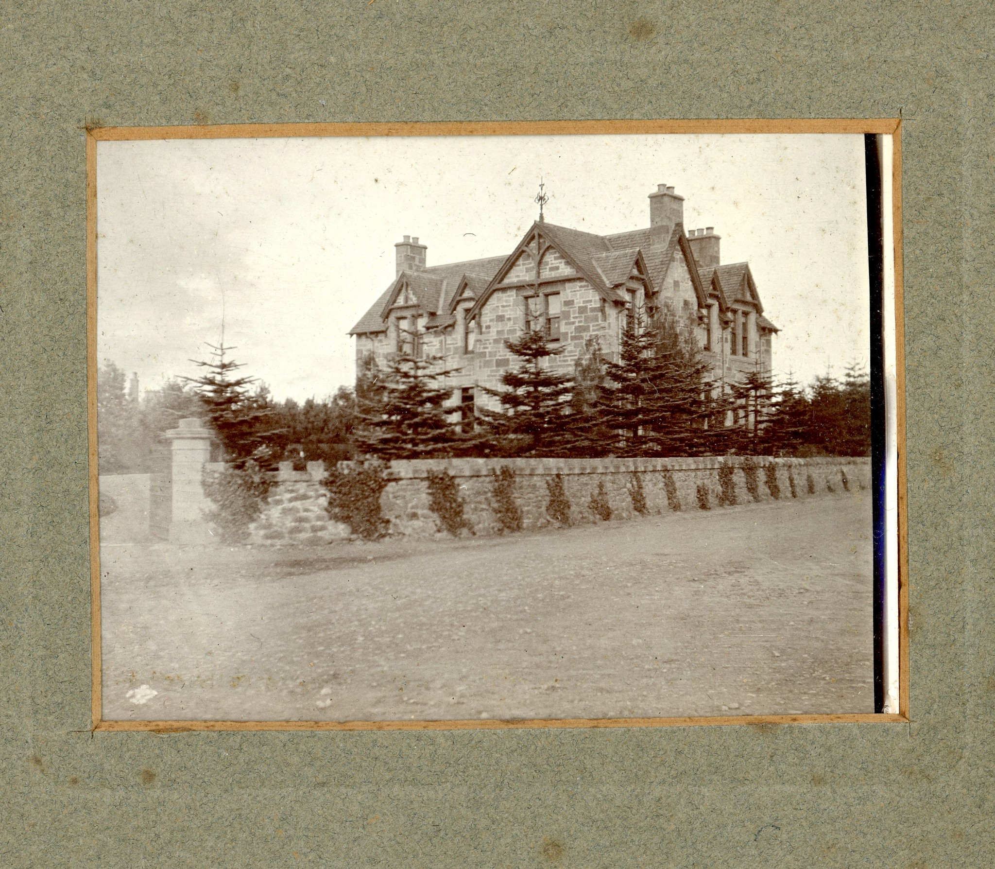 Monochrome photograph of house 'Torranroy', Evelix Road, Dornoch, mounted on grey card.