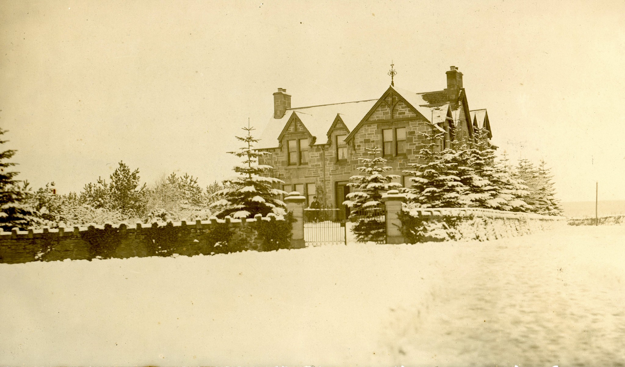Monochrome photograph of house, 'Torranroy', Evelix Road, Dornoch in the snow
