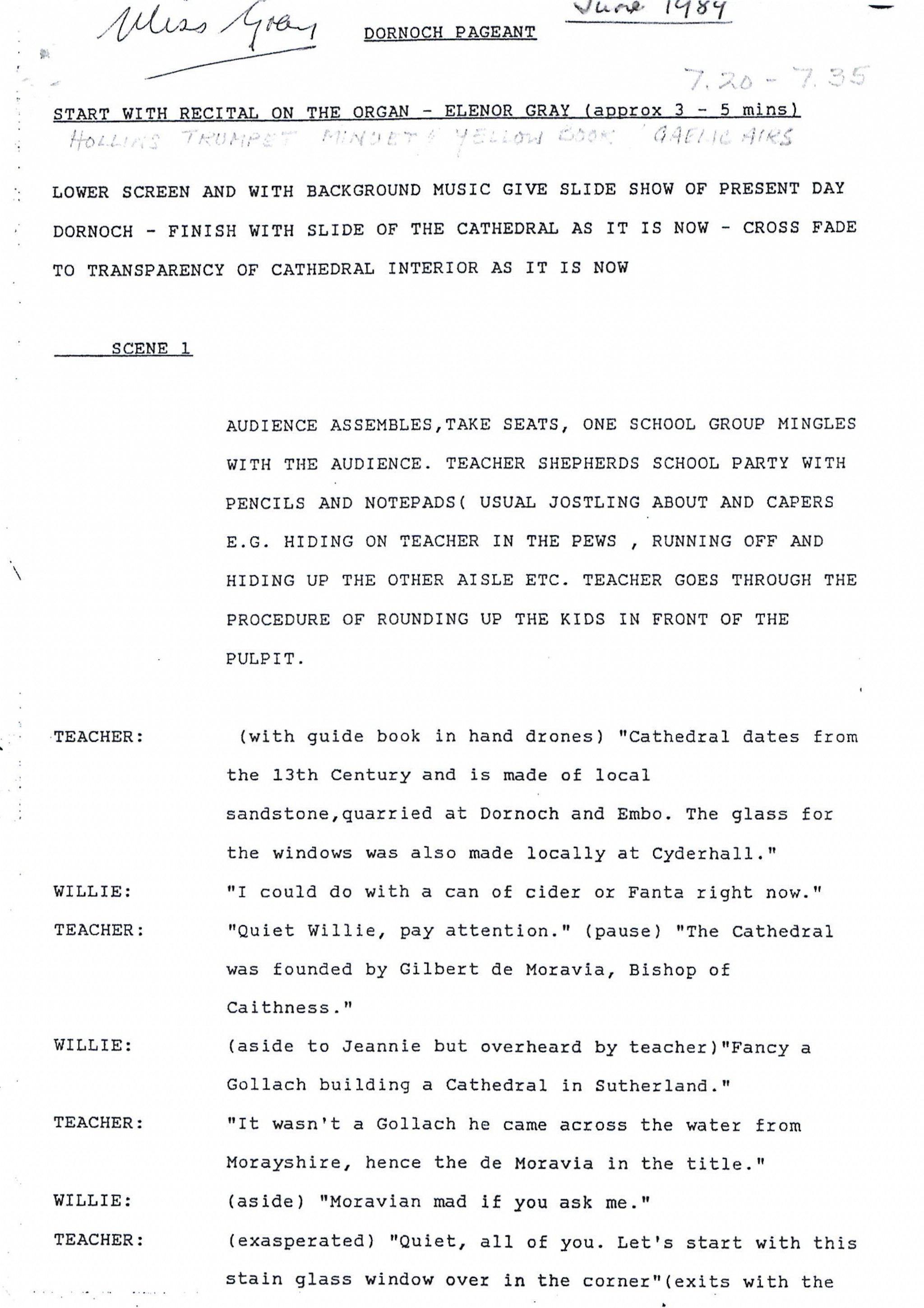Script for the Dornoch Pageant held in June 1989.
