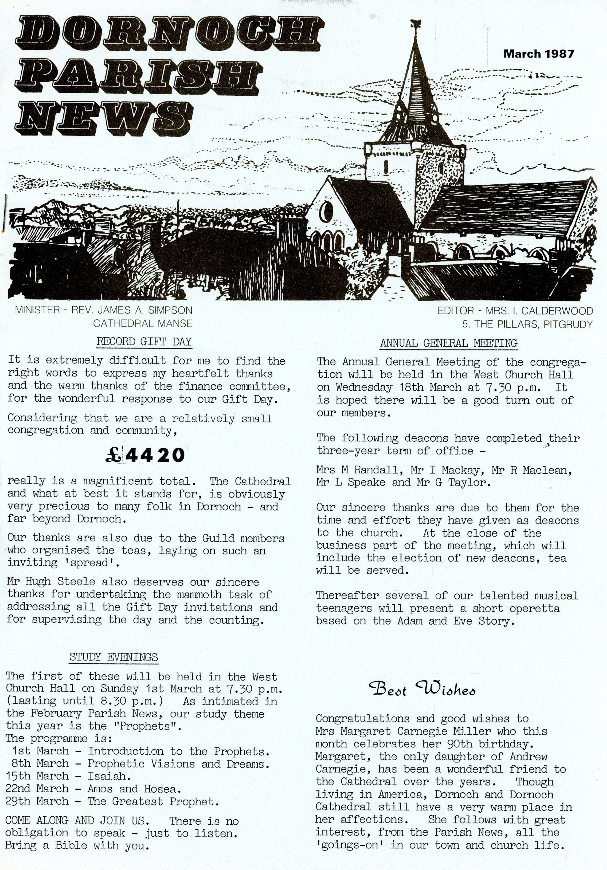 Dornoch Parish News, March 1987 Date Added: 03 March 2022 Year: 1987 Institution Name: dnhhl Cat No: ◀ | 2022_032_01 | ▶ Picture No: 14973 Dimensions: A4 Download Large Version (1.8MB)Download PDF (861kB) Comments Form Goes Here