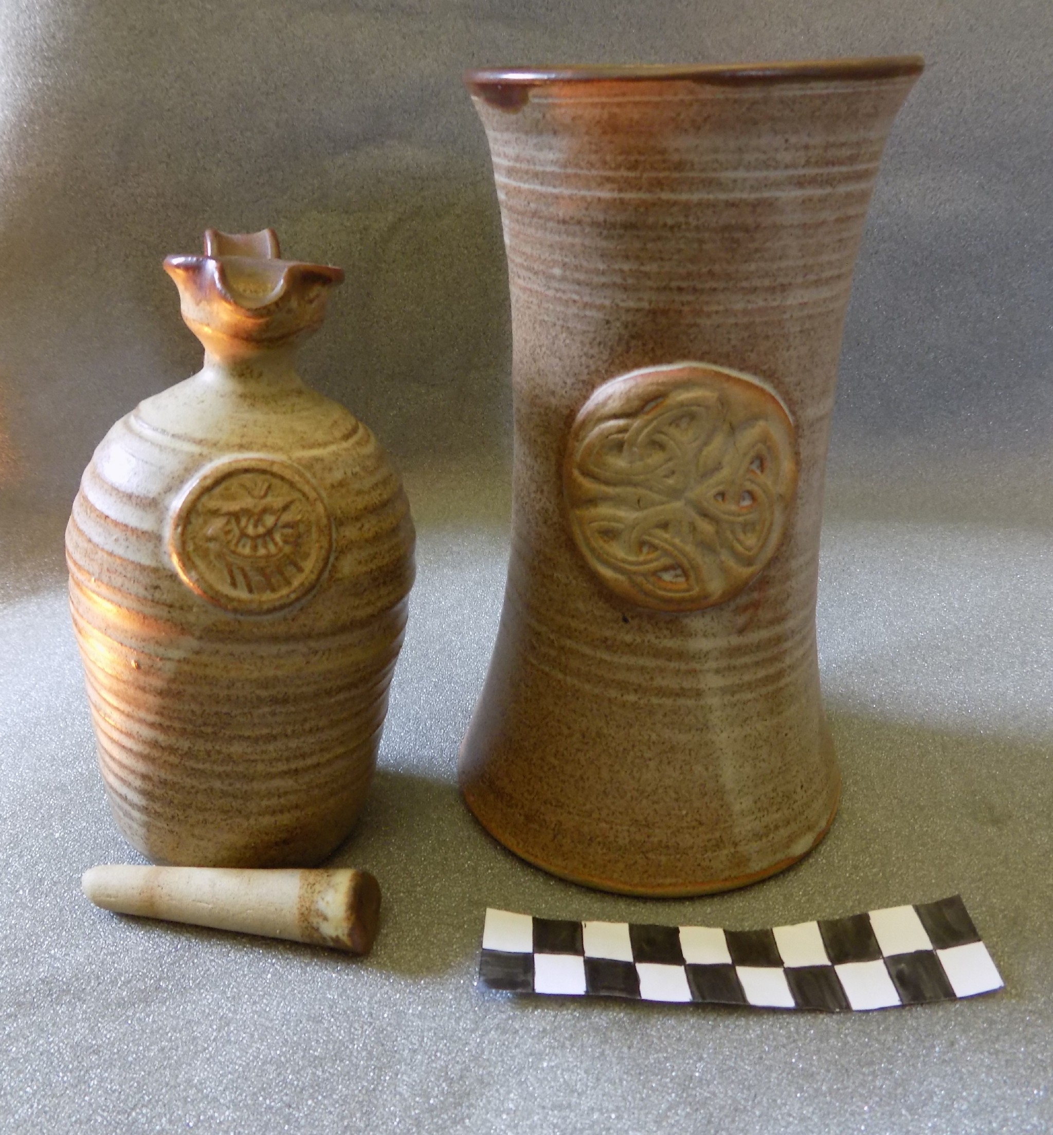 A tankard and oil jug from Dornoch Pottery