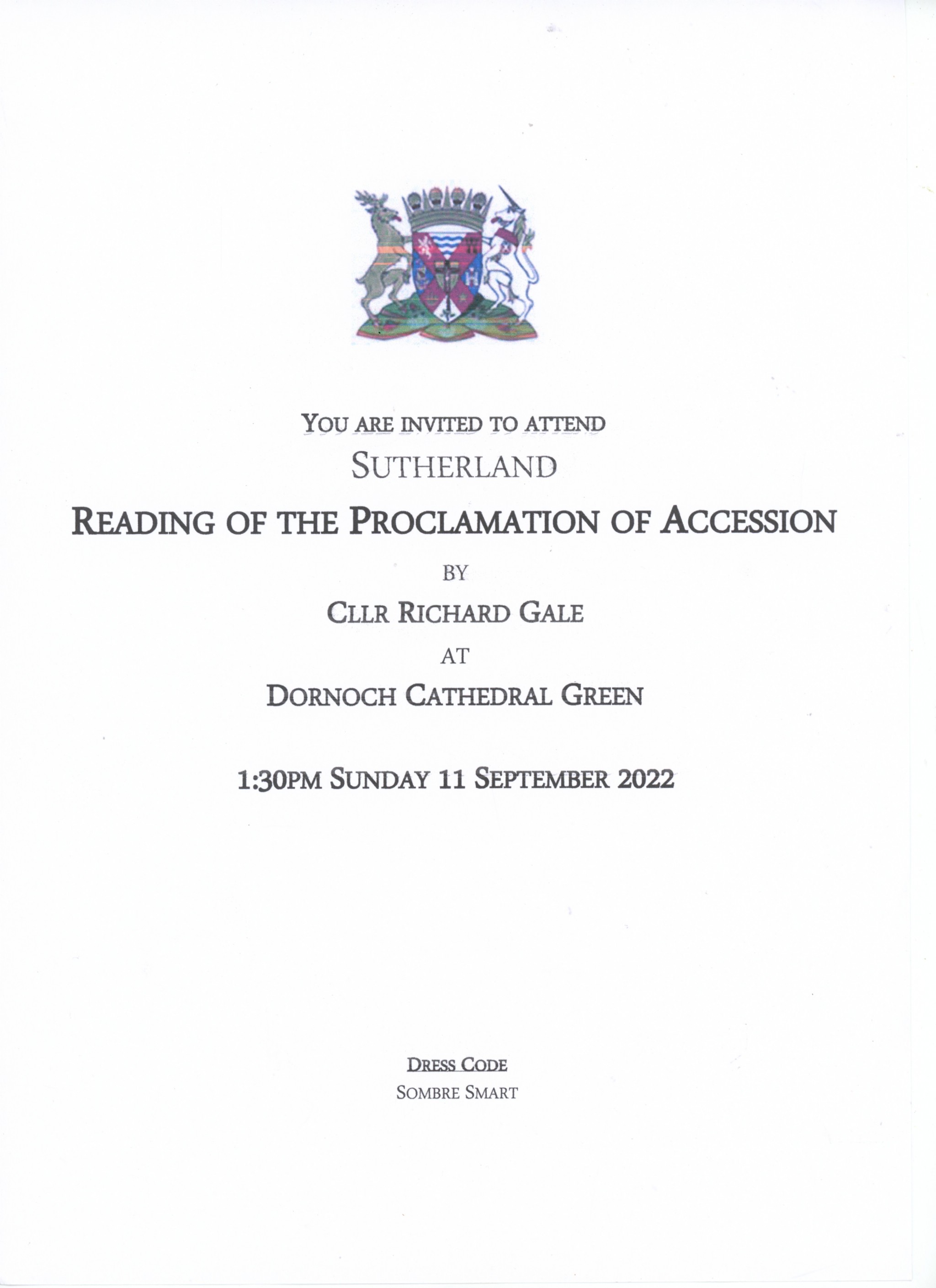 Public poster giving notice of the Reading of the Proclamation of Accession by Councillor Richard Gale on Cathedral Green, 11 September 2022. Photographs of the event can be viewed at picture #15190