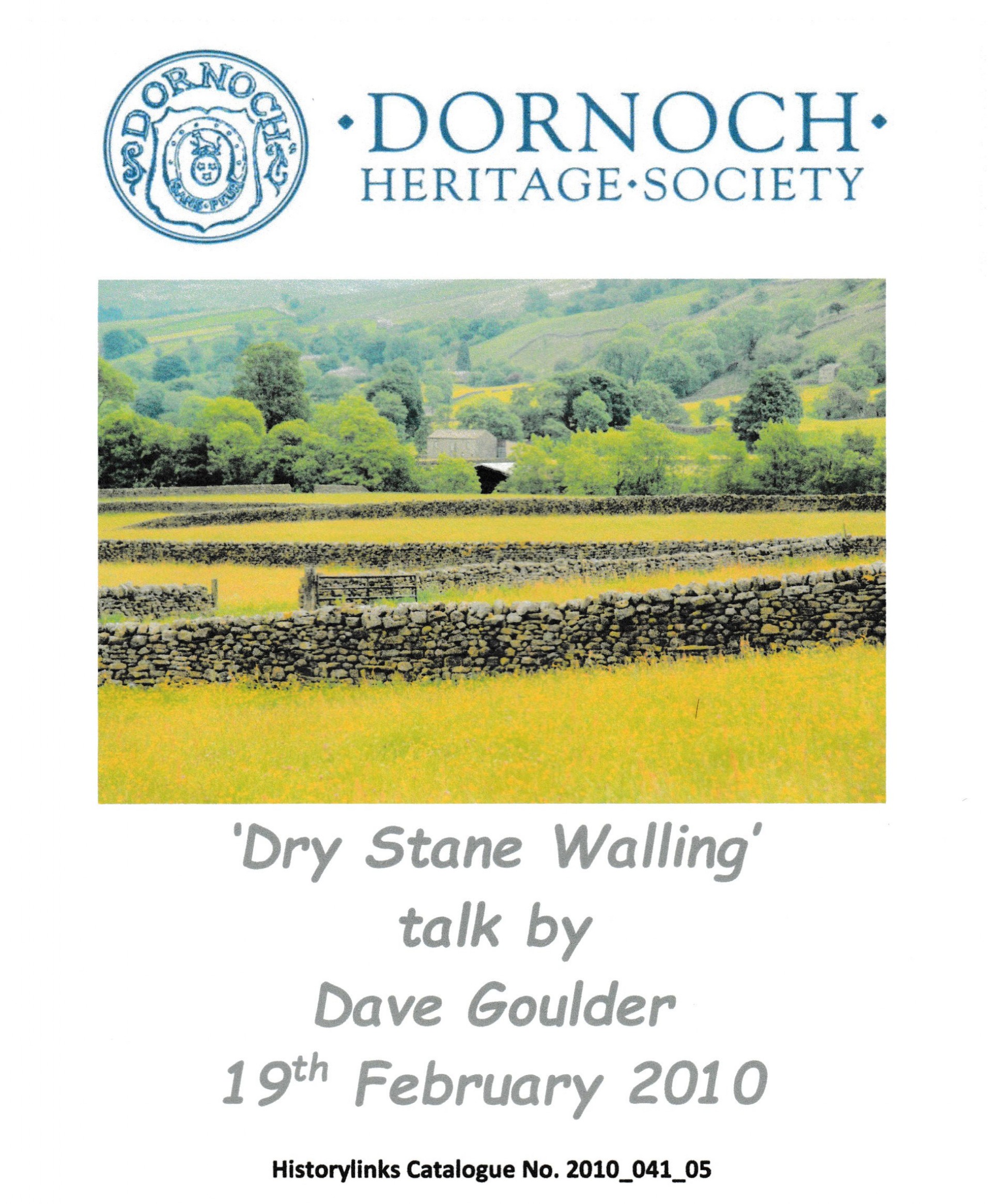 Dornoch Heritage Society talk ‘Dry Stane Walling' by Dave Goulder on 19th February 2010 was originally recorded on a mini-disc.
