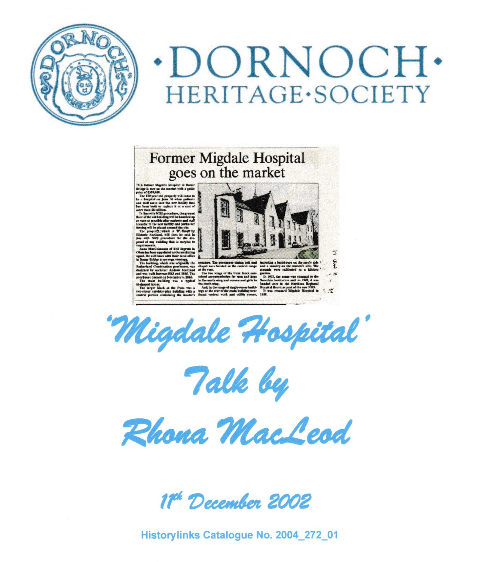 Dornoch Heritage Society talk ‘Migdale Hospital' by Rhona Macleod on 11th December 2003 originally recorded on a mini-disc.