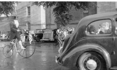 Pic 12531: Penny Farthing rider at Coronation pageant 1953