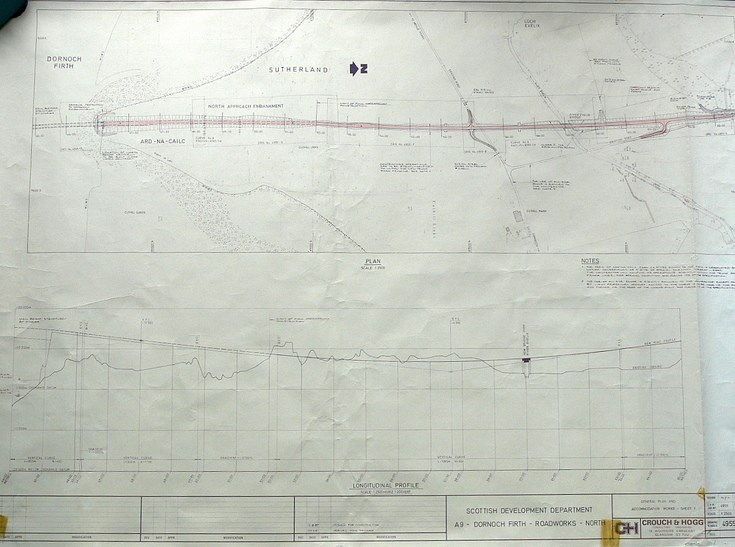 First of four plans for the new road approaches to the Dornoch Firth bridge. Engineers' copies.