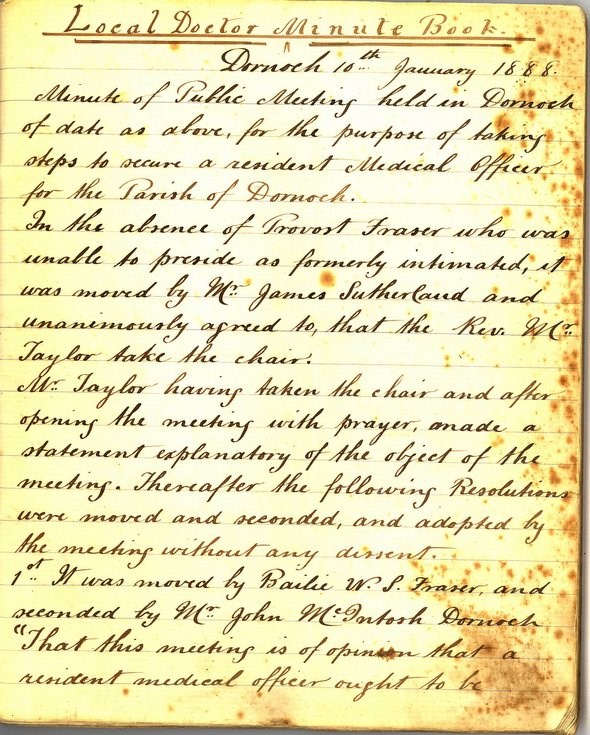 Extract Dornoch Doctor Minute Book 10 January 1888