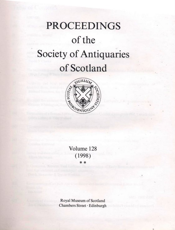 Eight volumes of the Proceedings of the Society of Antiquaries of Scotland for the years 1998-2001 and 2005. The volumes are blue linen bound with gold title lettering on the spines.