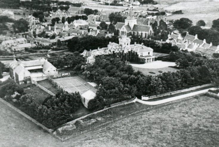 Monchrome aerial photograph of the Burghfield Hotel viewed from the north west with the Cathedral and town centre beyond