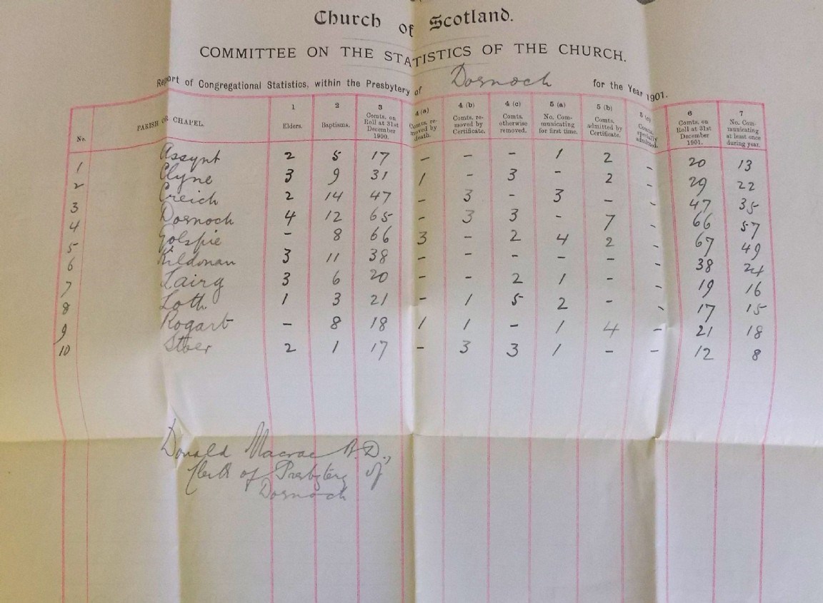 Church of Scotland, Committee on the Statistics of the Church, Dornoch, 1901