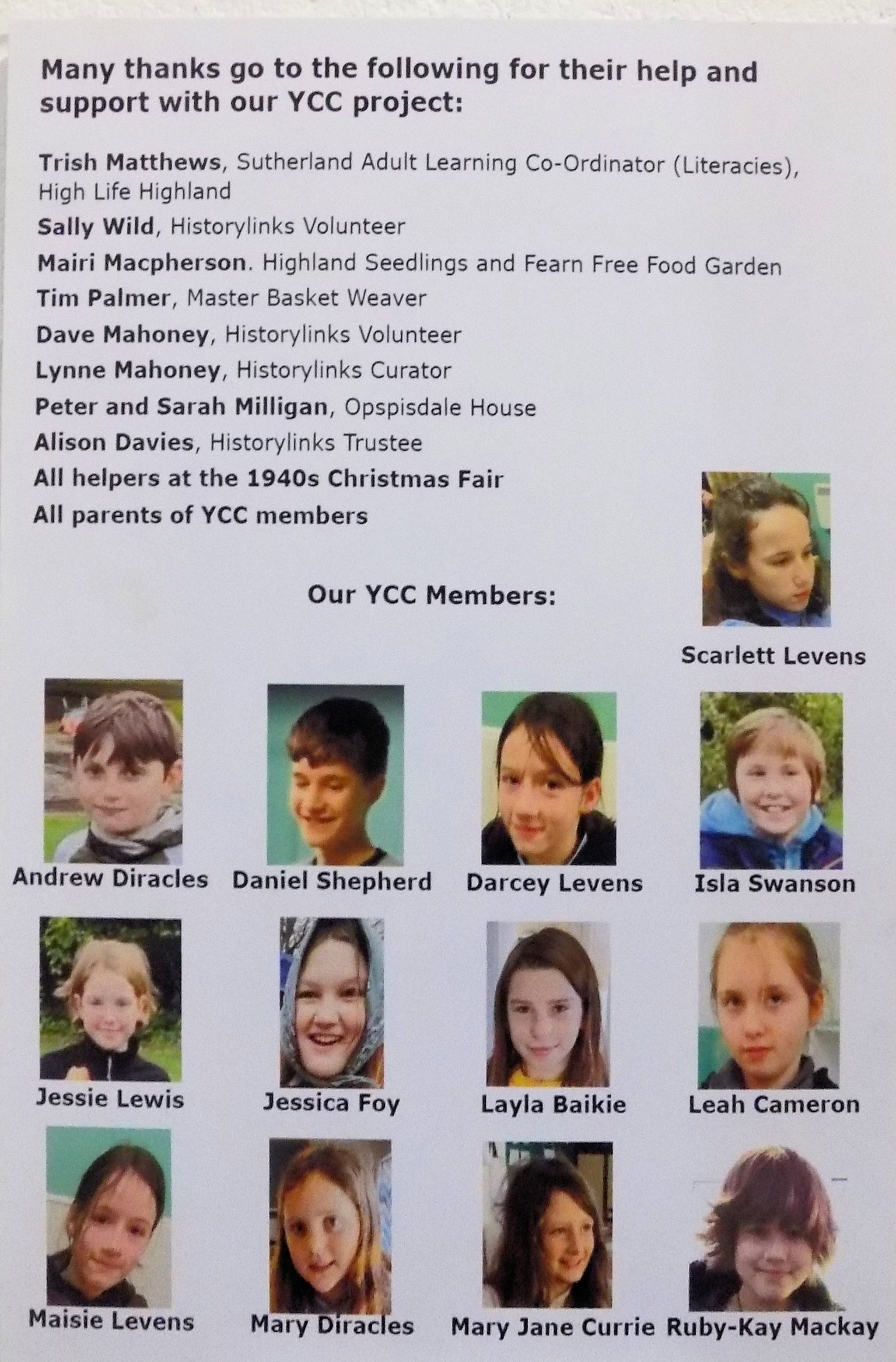 Colour photograph of the second exhibition display board provided a list of the staff, volunteers and other helpers with the remainder of the panel showing the names and photograph of the participating Young Curators.