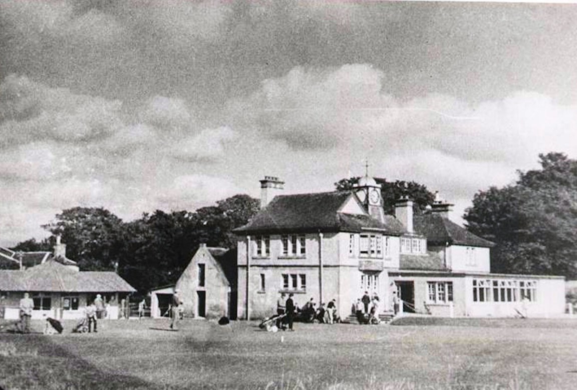 Monochrome photograph of the Royal Dornoch Clubhouse showing the extension built in 1961 to accommodate the lounge bar. The extension was built at a greater cost than the original Clubhouse.