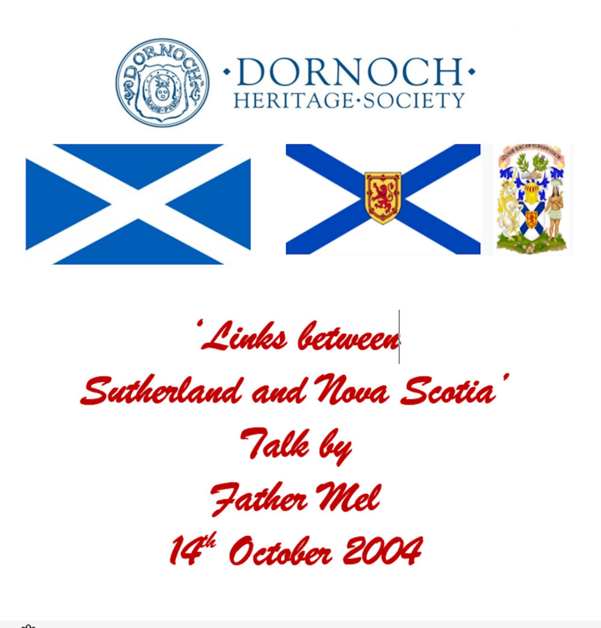 A talk on 'Links between Sutherland and Nova Scotia' by Father Mel on 14th October 2004 was simultaneously record as a mini-disc audio file.
