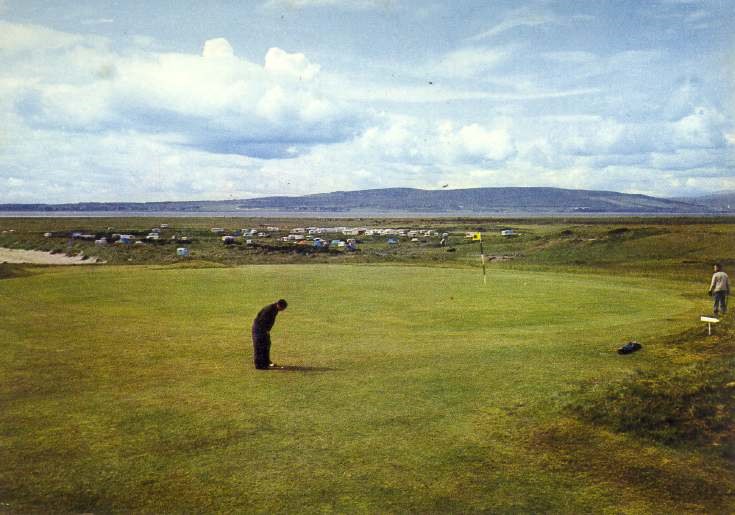 Colour postcard of the Royal Dornoch Golf Course. From an album of postcards and photographs taken by Mrs J.I.C. Mackay of Dornoch and surrounding area.