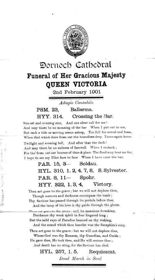 Order of service for funeral of Queen Victoria, Dornoch Cathedral