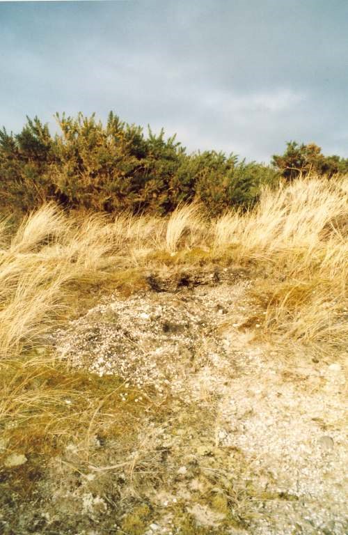 A set of nine colour photographs showing the general area, and successive close-up views of the shell midden at Caile at NH742873.