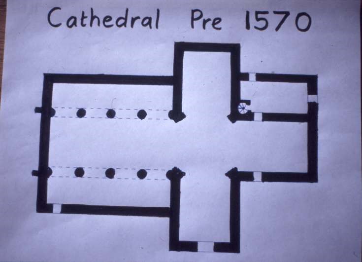 Slide, from a collection by Ian Ross-Harper, showing a plan of the Cathedral pre 1570.