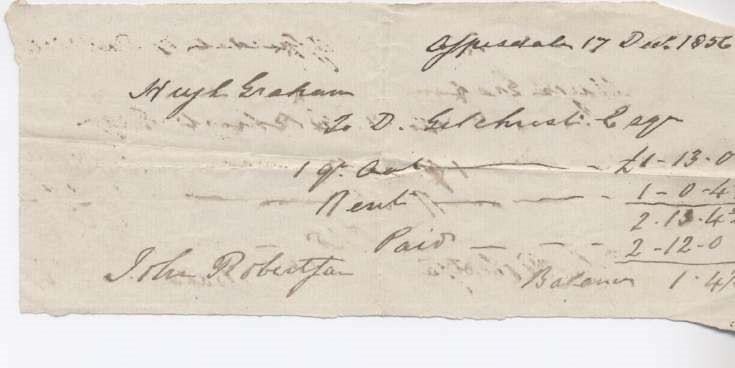Rent receipt ~ Hugh Graham 1856