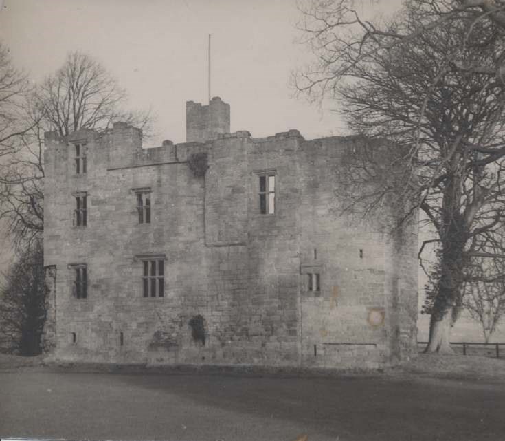 Scrapbook of photographs taken by Miss Lyon. Page 27 with two unique monchrome photographs 039 with inscription 'Dilston Castle, Northumberland'