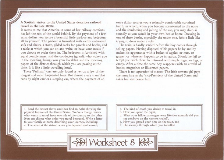 Illustration from a set of 21 posters of the life of Andrew Carnegie published on the 150th anniversary of his birth. A3 size with brown type, illustrations and borders on white background.