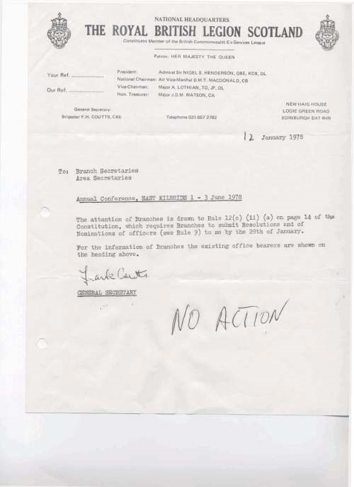 British Legion Dornoch Branch Correspondence concerning the annual conference Jun 75 - Jan 78