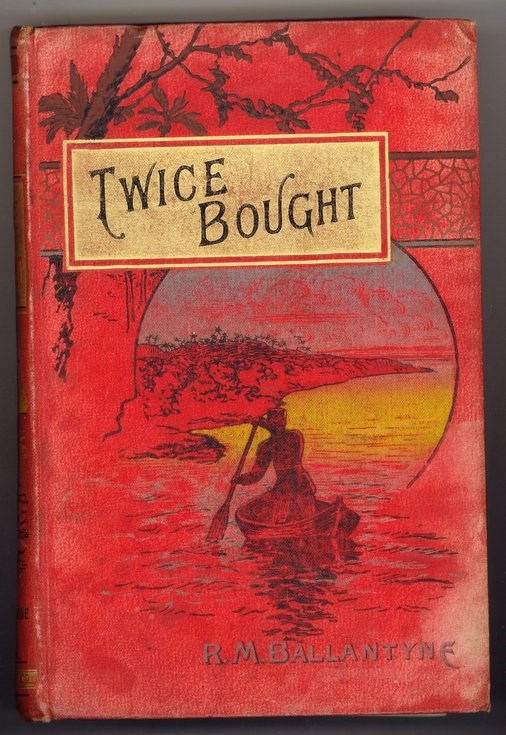 Colour photograph of the book 'Twice Bought' by R M Ballantyne, within inscription 'awarded to Maggie Mackay by the Sutherland Association Edinburgh for Regularity of Attendance during Session 1893-94' presented by Alex Angus headmaster Dornoch Academy Oct 19th 1894