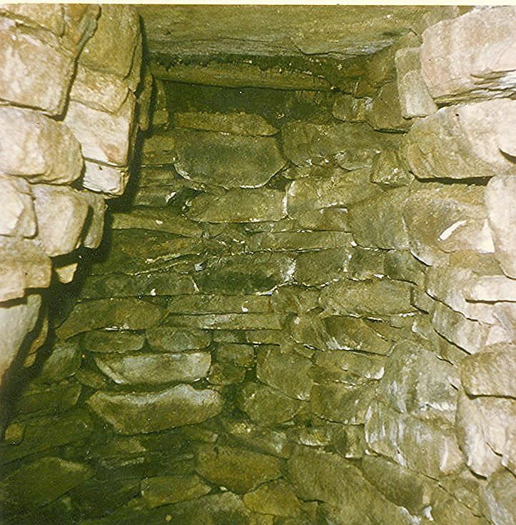 Colour photograph, from the album of Miss E. Mackay BA., and Miss J. Joyce BA., of the inner gallery of an earth house at Kirkton.