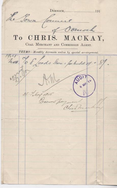 Bill from Chris Mackay, coal merchant and commission agent, for stone, paid Feb 26th 1915.