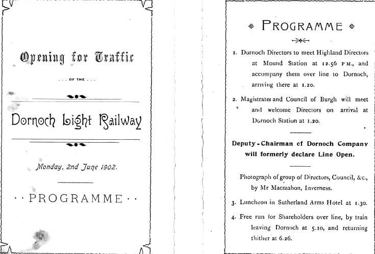 Programme for the opening of the Dornoch Ligth Railway to traffic, 2/6/1902.