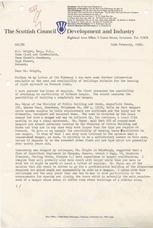 Dornoch Airstrip correspondence 1968