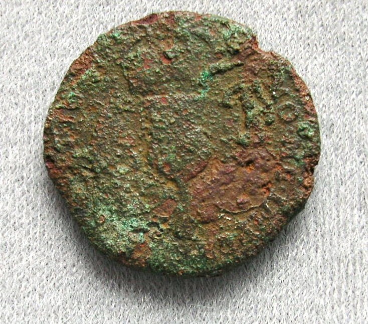 Unidentified copper coin found at Littleferry. Thistle visible on one side.