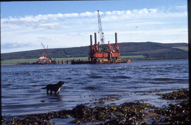 Transparency from a set of 40 showing the construction of the Dornoch Firth road bridge in 1989.