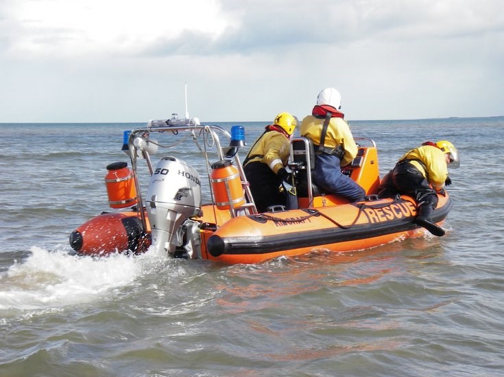 Second of a set of 15 colour images relating to the Embo Search & Rescue Association and the 'Tim Jarvis' inshore lifeboat (see 2007.257.01-03 of the dedication ceremony of this lifeboat). Routine exercise on 30 Aug 08 with crew members Neil Dalton, Don Grant, geoff Menzies, kevin Williamson