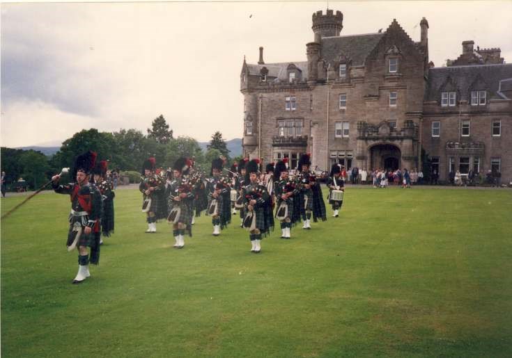 Colour photo of Dornoch Pipe Band at Skibo Castle, open day 31/7/1988