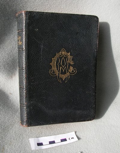 Pic 9448: Bible - with intials AC - possibly Andrew Carnegie
