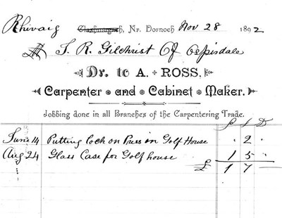 Pic 127: Account owed to A Ross by J R Gilchrist 1892