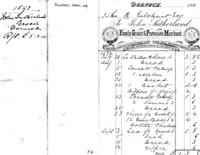 Pic 129: invoice from John Sutherland, grocer to John R. Gilchrist
