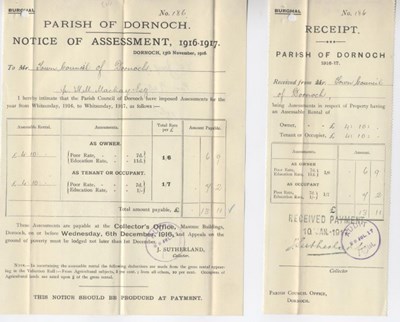 Pic 8862: Notice of assessment for burghal rates 1916-17