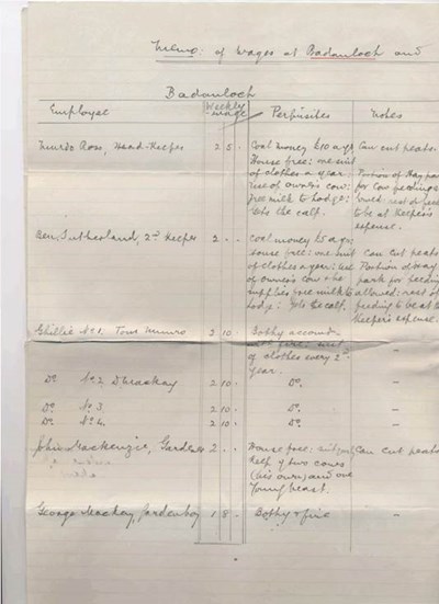 Pic 8985: Comparison of wages at Badanloch and Torrish 1920
