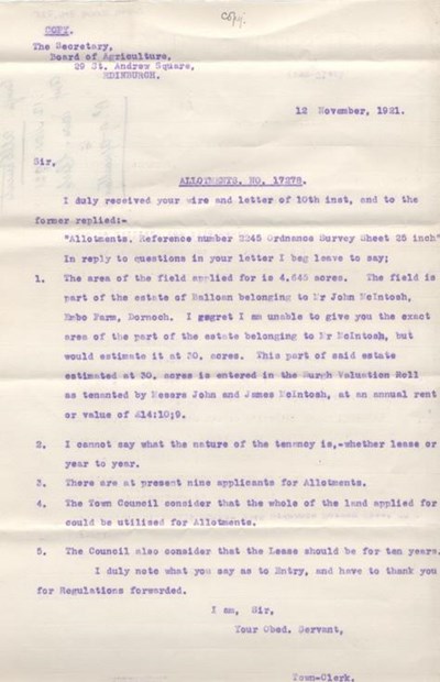 Pic 8941: Letter to Board of Agriculture re. allotments 1921