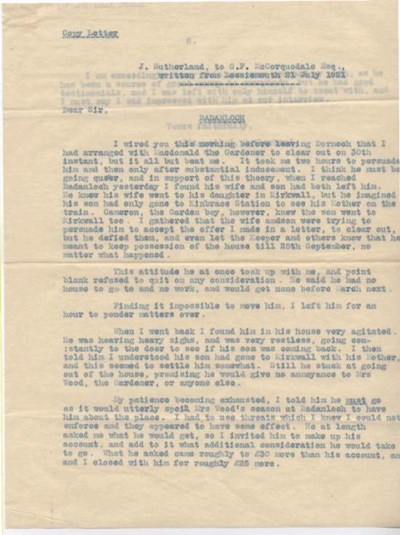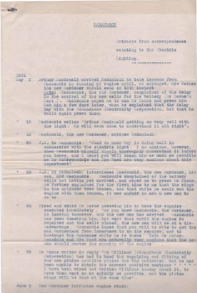 Pic 8991: Paper relating to electric lighting at Badanloch ~ May to Aug 1921