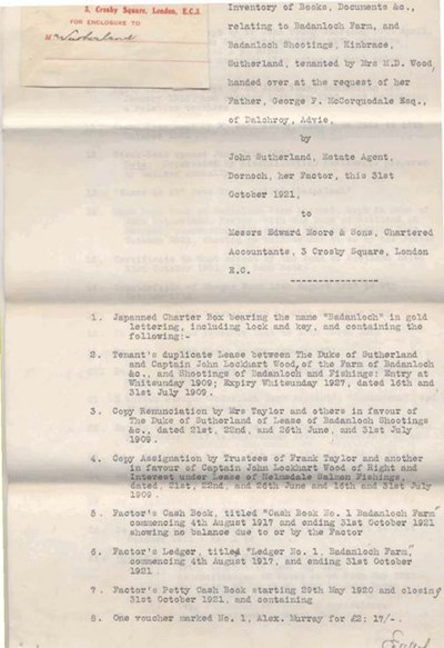 Pic 8995: Inventory of Badanloch papers ~ Oct.31st 1921